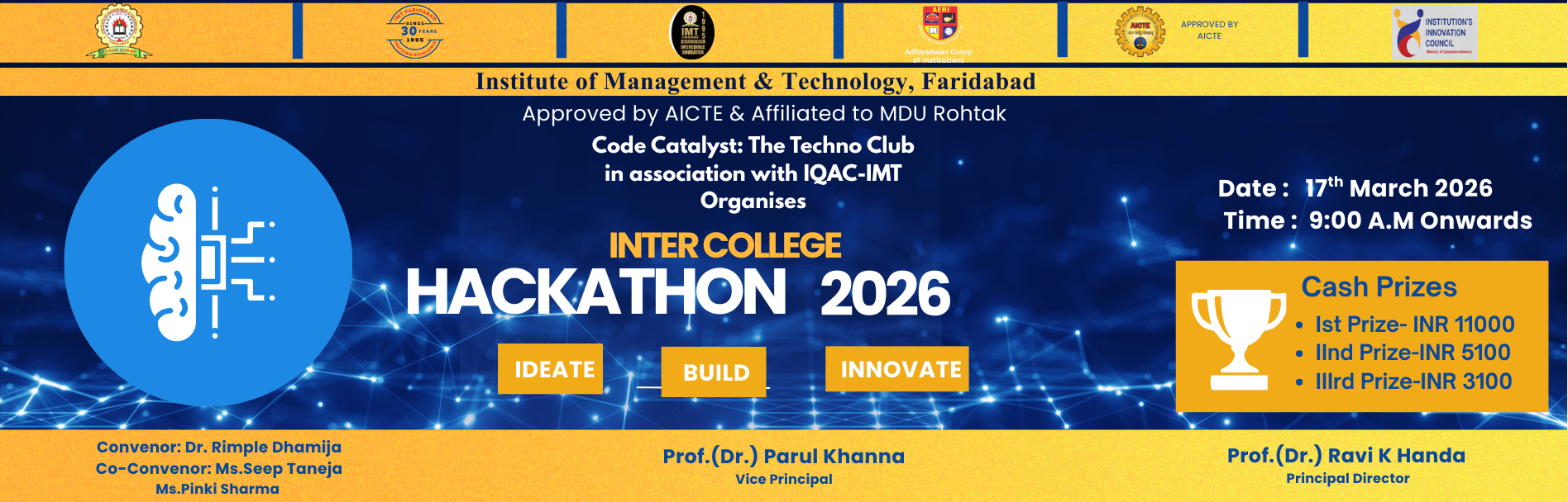 The Institute of Management & Technology (IMT), Faridabad was propounded in 1995 by the vision and toil of an eminent academician Hon’ble Dr. M Thambi Durai, Former Union Minister of law, Justice & Company Affairs and Surface Transport. It is not just an Institute but an ideal platform and forum for corporate managerial aspirants. Its genesis lies not by any coincidence but for an urge to set standards of excellence and perfection in the quest for outstanding position in the field of education, research and consultancy. It is his vision that has made IMT, Faridabad at the top of the mind of business conglomerates. Today IMT is known not only for its quality of teaching but also for its corporative system and structure.